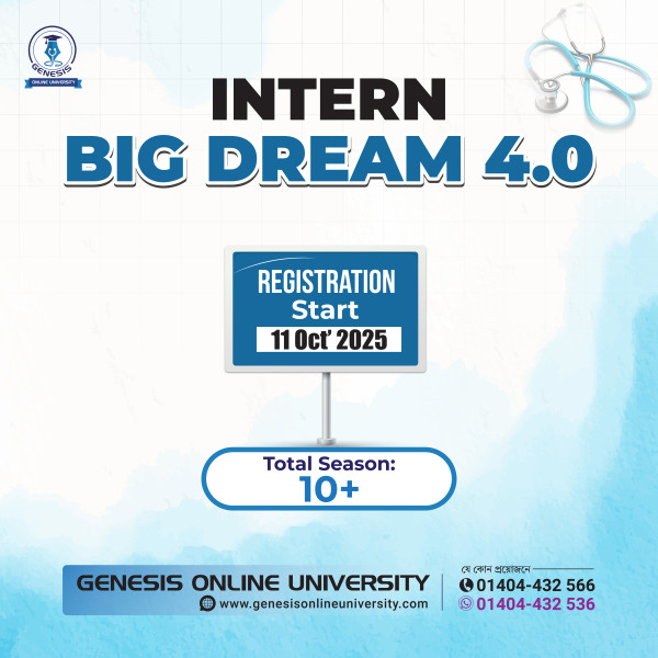 ইন্টার্নশিপের প্রথম দিন থেকেই শেখার যাত্রাকে বাস্তব রূপ দিতে এই প্রোগ্রামে ধাপে ধাপে শেখানো হবে ক্লিনিক্যাল রিজনিং, ম্যানেজমেন্ট ও ইনভেস্টিগেশন-ভিত্তিক সিদ্ধান্ত গ্রহণের কৌশল। প্রতিটি গুরুত্বপূর্ণ বিষয় যেমন Body Fluid, Fever, Antibiotic, CT scan, X-ray ইত্যাদি কভার করা হবে, সাথে থাকবে 𝐏𝐎𝐒𝐓 𝐆𝐑𝐀𝐃𝐔𝐀𝐓𝐈𝐎𝐍 𝐄𝐍𝐓𝐑𝐀𝐍𝐂𝐄 থেকে শুরু করে BCS, ARMY, FOREIGN DEGREE ও অন্যান্য জব প্রিপারেশনের বিশেষ সেশন — এক প্ল্যাটফর্মে পূর্ণাঙ্গ প্রস্তুতির সুযোগ।